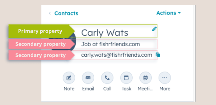 - Secondary Properties = all the extra spice (domain, job title, etc.)
