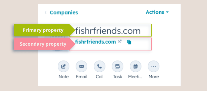 - Primary Property = the big bold thing you see on the left (e.g., company name)